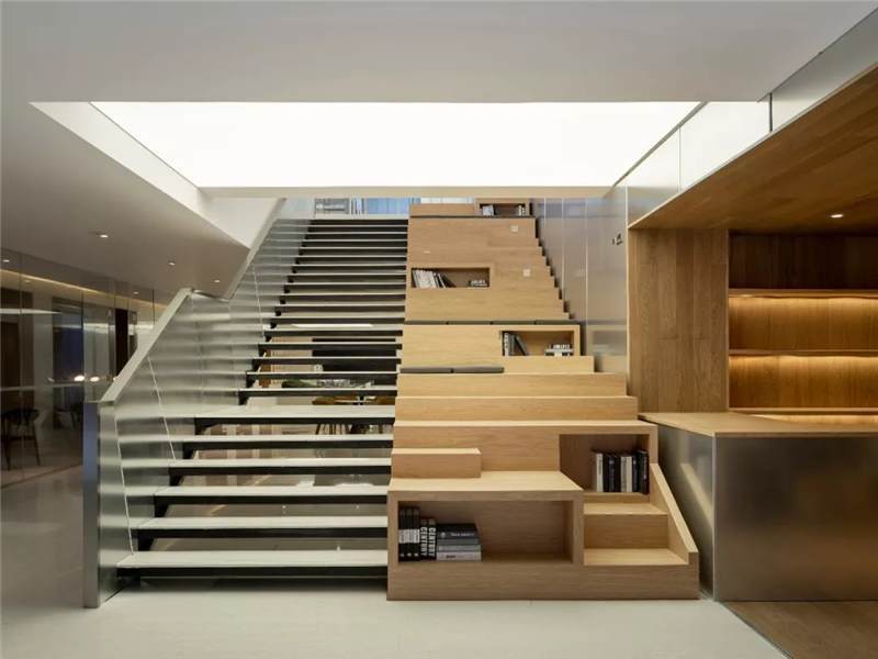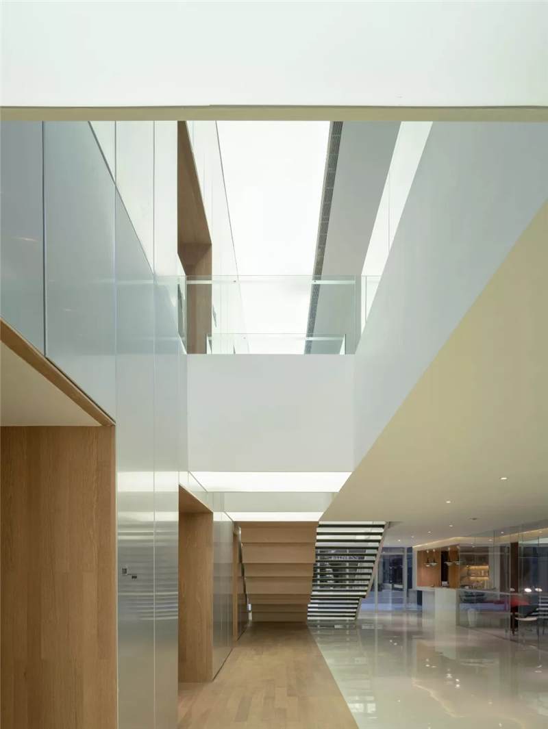 So in the space design, try to break theboundaries of indoor and outdoor spaces, and let the inner and outer spacescenes communicate with each other. The basement floor is the space fordiscussion and the outdoors is a sunken courtyard. The use of large glasspanels brings the courtyard landscape indoors. The staircase leading to thelobby is designed as a large staircase that opens to the courtyard, where youcan stay, relax and enjoy the view of the courtyard and the changes in lightand shadow. On the fourth and fifth floors, we designed a two-story rooflighting atrium going through the two stories with reference to the courtyardspace from the Lingnan Architecture – the skylight flows down from the top,spreads over the landscape tree on the atrium of the fourth floor, andoverflows in the space, creating an illusion that the interior is like anoutdoor courtyard.