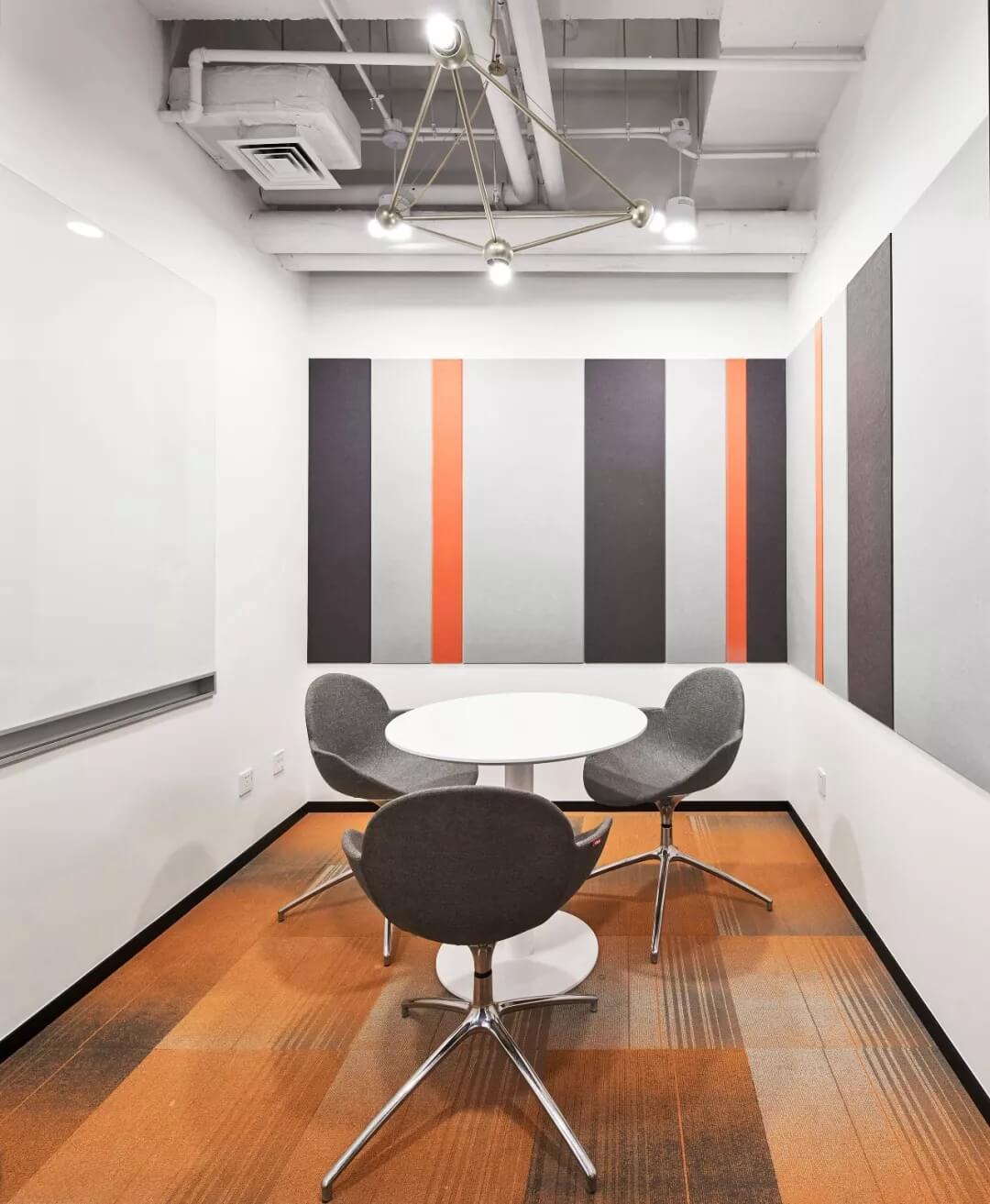 核心筒是整個辦公空間的混合功能區(qū),頻繁產(chǎn)生互動式交流,頭腦風(fēng)暴,也是重要的會客及自由移動式辦公區(qū)。在設(shè)計上,艾迪爾設(shè)置了滿足不同會客需求的休閑討論區(qū),連接著標準辦公區(qū)和公共通道,營造多層次交流氛圍,體現(xiàn)商湯科技開放包容的文化價值觀。