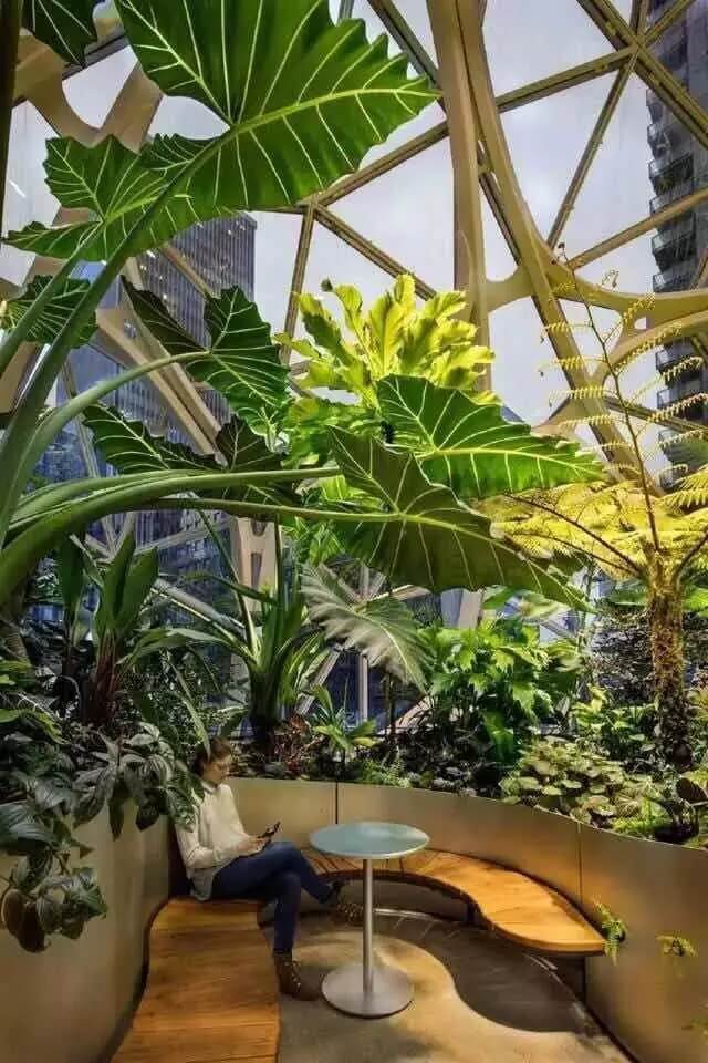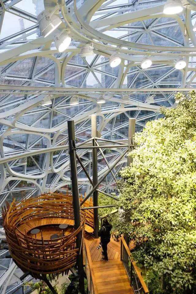 讓他們可以在溪邊的石子小徑上放空自我,在來自南美的大樹下閉目休憩。當(dāng)然以高標(biāo)準(zhǔn)的企業(yè)文化著稱的亞馬遜,也希望 The Spheres 如此優(yōu)美舒適的生態(tài)環(huán)境能夠讓員工更好地沉思和迸發(fā)出靈感的火花。