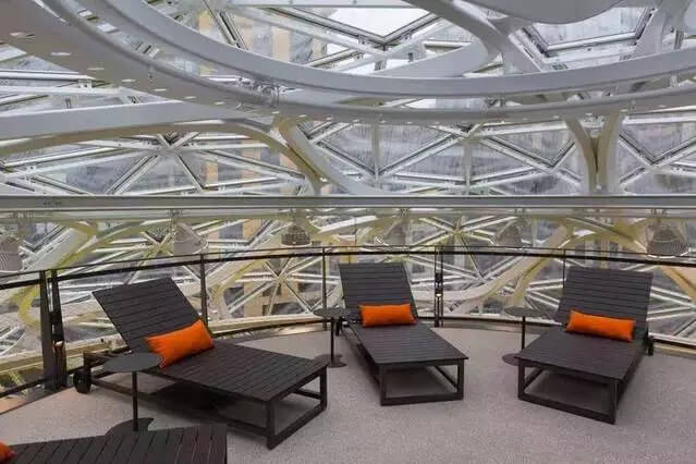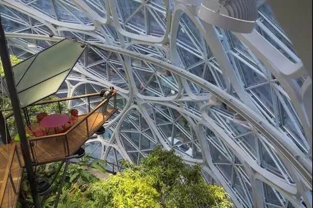 不同類型的開放區(qū)域 亞馬遜全球不動(dòng)產(chǎn)及設(shè)施副總裁約翰·斯科特勒(John Schoettler)表示, 整座建筑可以同時(shí)容納800人。它除了是一個(gè)類似公園的空間外,員工們也可以在里面上網(wǎng)充電。