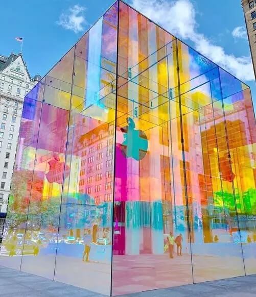 ▲蘋果零售店彩色外觀 圖源網(wǎng)絡(luò)