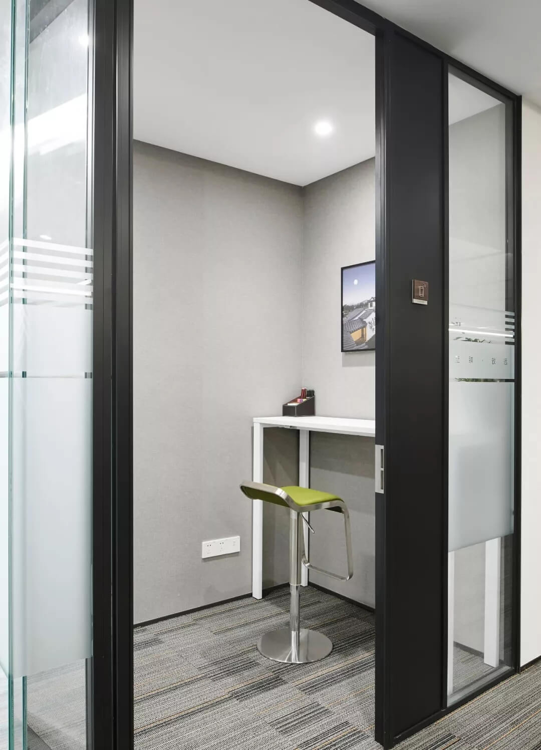 設(shè)計(jì)師綜合融創(chuàng)的不同會(huì)議使用訴求以及原建筑結(jié)構(gòu),在空間布局上,打造核心筒混合會(huì)議帶,不同大小、不同形式的會(huì)議空間嵌套在每層開放辦公區(qū)的不同位置,滿足多元化會(huì)議需求;卡座,開敞洽談區(qū),休閑洽談區(qū)滿足互動(dòng)交流,頭腦風(fēng)暴式會(huì)議需求。多層次多功能的交流會(huì)議由智能系統(tǒng)高效管理,體現(xiàn)融創(chuàng)開放、包容的企業(yè)文化。