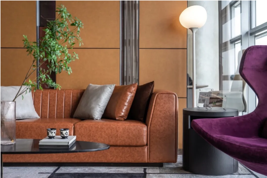 以寶格麗風的橙色和黑色構設起空間的精尚品位,同時通過薄暮紫和優(yōu)雅棕營造舒適雅致的氛圍。