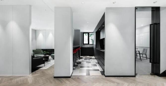 室內(nèi)為符合當代辦公需求,定位現(xiàn)代簡約時尚的風格,白色和黑色的主色調(diào),中間銜接色的灰色調(diào),將一至三樓空間一氣呵成,沒有多余的修飾,打造出一個宜居、充滿藝術(shù)氣質(zhì)的住宅式辦公環(huán)境。