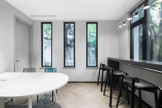 建筑本身原有的采光條件極好,以玻璃隔墻形式,讓整個空間在動線功能分區(qū)上變得更加開放、自由,同時又相互聯(lián)結(jié),彼此融合。