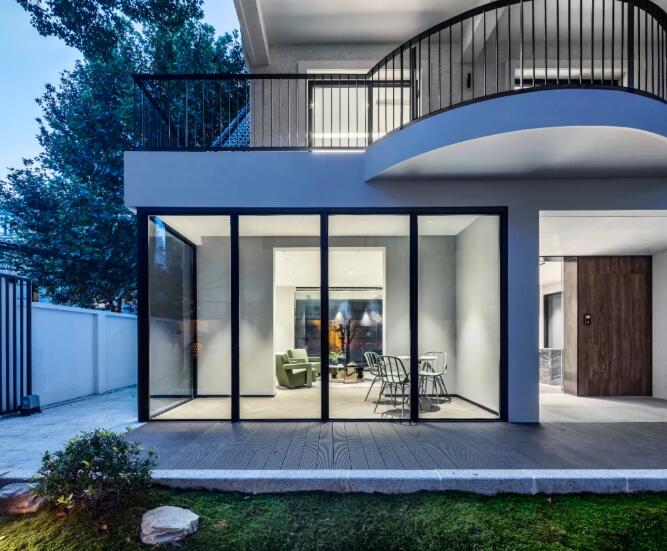 建筑上保留其原北美風格的同時,植入現(xiàn)代化語言,拆除所有建筑裝飾面,重新選材及搭配,追求簡化,同時精心雕塑園林打造詩意生活情境,使建筑和風景高度融合。景觀美學方面,優(yōu)雅的東方園林搭配西式別墅,以現(xiàn)代眼光勾勒傳統(tǒng)文化魅力,賦予空間更多的力量。