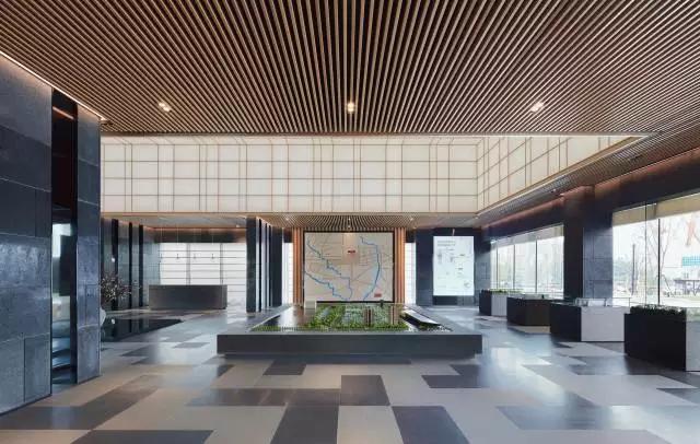 步入大廳,通過“借景”手法,將頗具詩情畫意的東方園林之景鋪呈在眼前,一抹翠綠更是讓整個(gè)空間靈動(dòng)起來,巧妙而又極具視覺沖擊。在陽光照射下,投影又成為景觀的一部分,展示出自然與建筑的互動(dòng),活躍且適宜。一大排落地窗串聯(lián)起室內(nèi)外關(guān)系,正是光線的引入,讓建筑、景觀、室內(nèi)形成有序的一體。沿著預(yù)接待吧臺的動(dòng)線向前穿引,便是整個(gè)銷控區(qū)域。