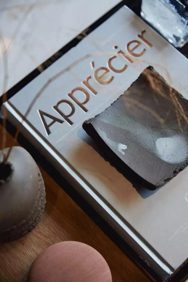 水吧臺以毛鑿面的形式呈現(xiàn),質(zhì)樸卻別具一格。而光線透射在吧臺頂面,又與書架、吊燈以及頂部的木百葉形成互動(dòng),勾勒出繽紛的空間輪廓。粗獷肌理感的石材,又與花瓣式的吊燈形成材質(zhì)上的鮮明對比,晶瑩璀璨。