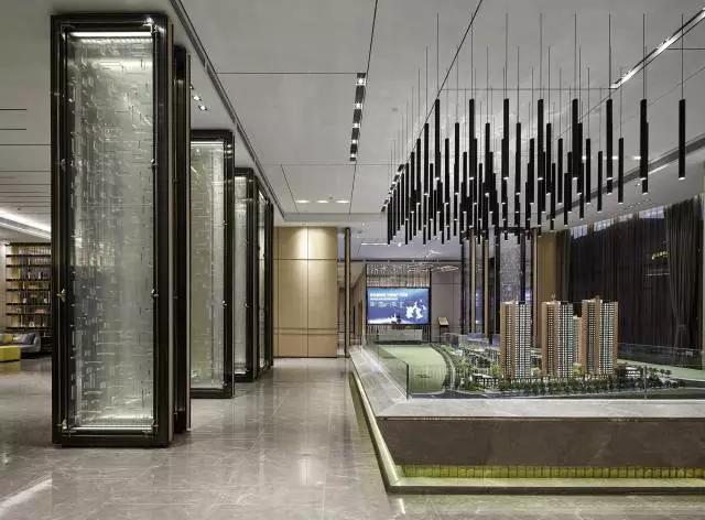 沙盤模型區(qū):充分利用建筑主體結(jié)構(gòu)的優(yōu)缺點(diǎn),將空間中較為“礙事“的“結(jié)構(gòu)柱”與隔斷、吊頂?shù)冉Y(jié)合,形成一個(gè)又一個(gè)虛擬空間,使不同功能的空間既能彼此獨(dú)立,又能保持空間的大氣恢宏感。