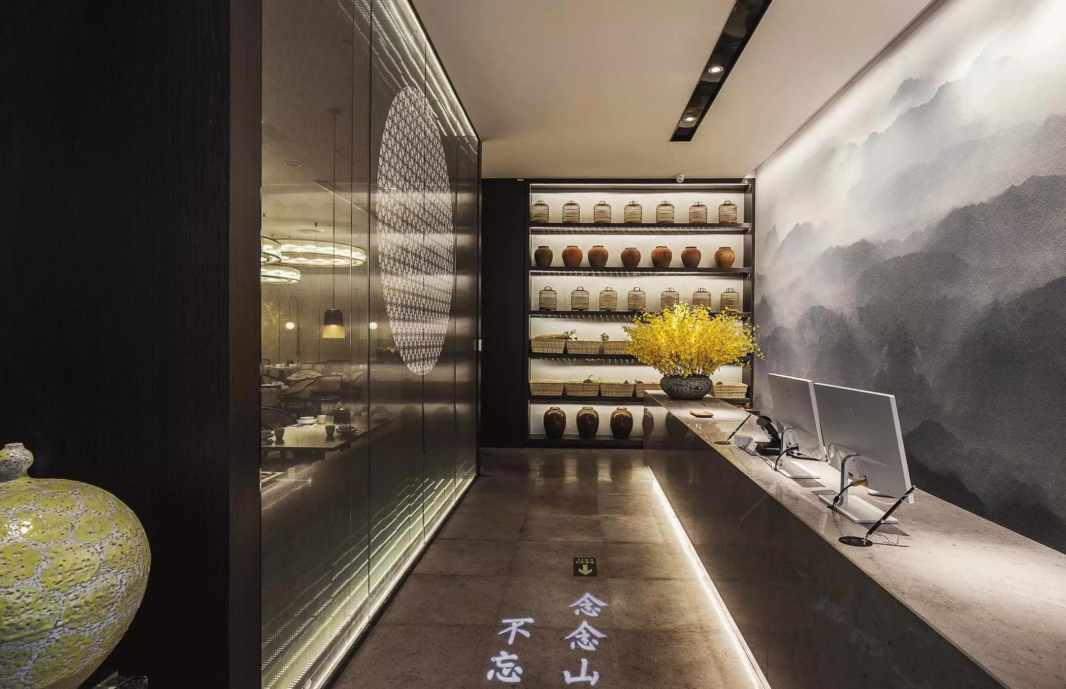設(shè)計(jì)中廣泛使用了灰藍(lán)色調(diào)的石材,地磚,皮革,墻板,結(jié)合清新的藤編,厚重的木材,充滿質(zhì)感的不銹鋼以及別致的燈具和光線,讓整個空間既清新優(yōu)雅又不失質(zhì)樸,讓人雖身處鬧市卻仿佛置身于海的廣渺與山的深幽,又始終籠罩在一層淡淡的氤氳不去的“鄉(xiāng)愁”之中。