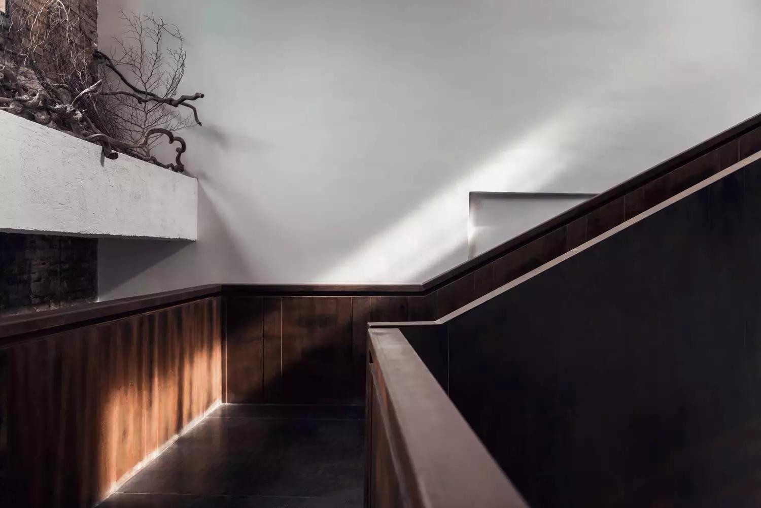 樓梯的鐵質(zhì)的暗褐色材料將隨著時(shí)間將慢慢腐蝕,人們可以看得見它的肌理生長。