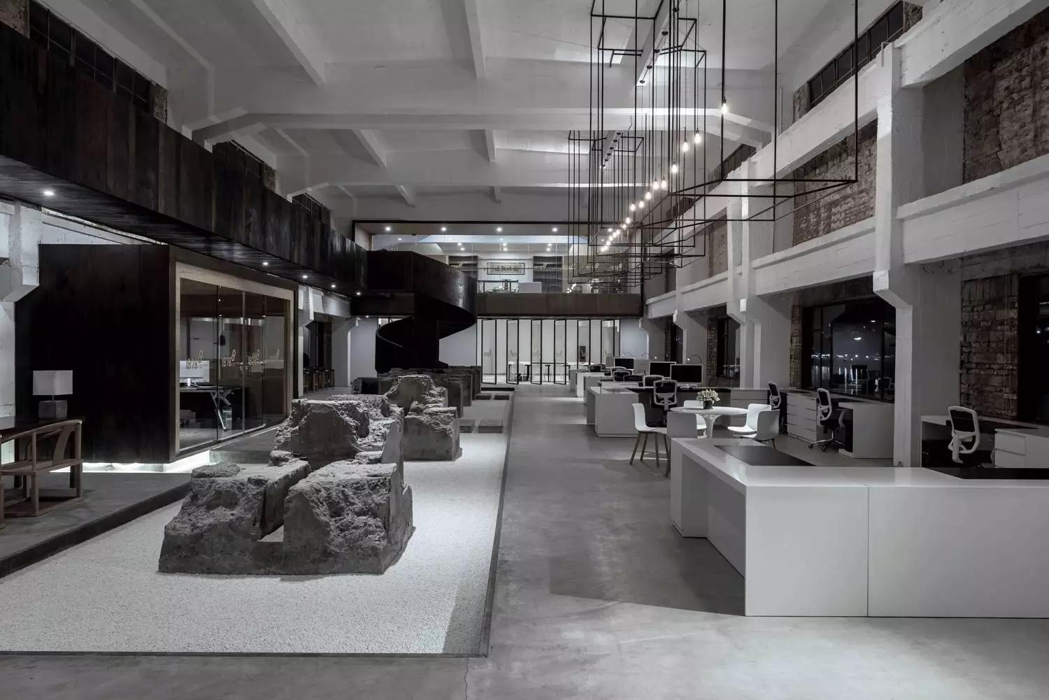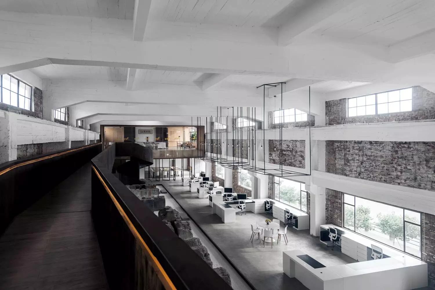 群組辦公空間保留的舊石墩是場(chǎng)所精神的集中體現(xiàn),正是它,喚起了空間裡地方風(fēng)貌的意象。