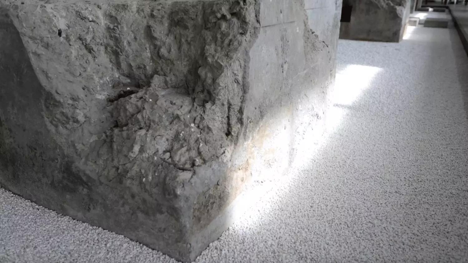 天窗的陽光投射在舊石墩上,光隨時(shí)間緩慢流淌,從晨曦到夕陽日復(fù)一日的撫摸石墩的肌理。人們彷彿可以感知到這片土地的過往,一天一年一個(gè)世紀(jì),或者更遠(yuǎn)。