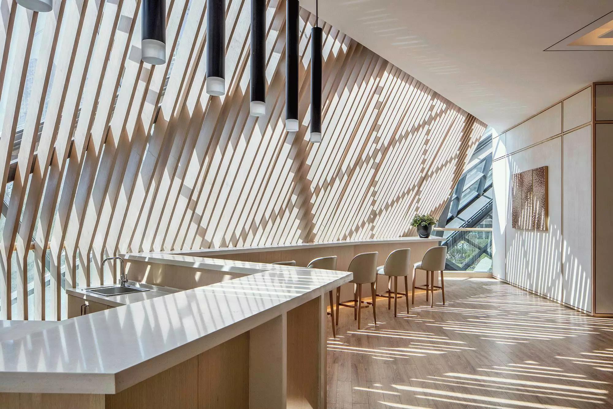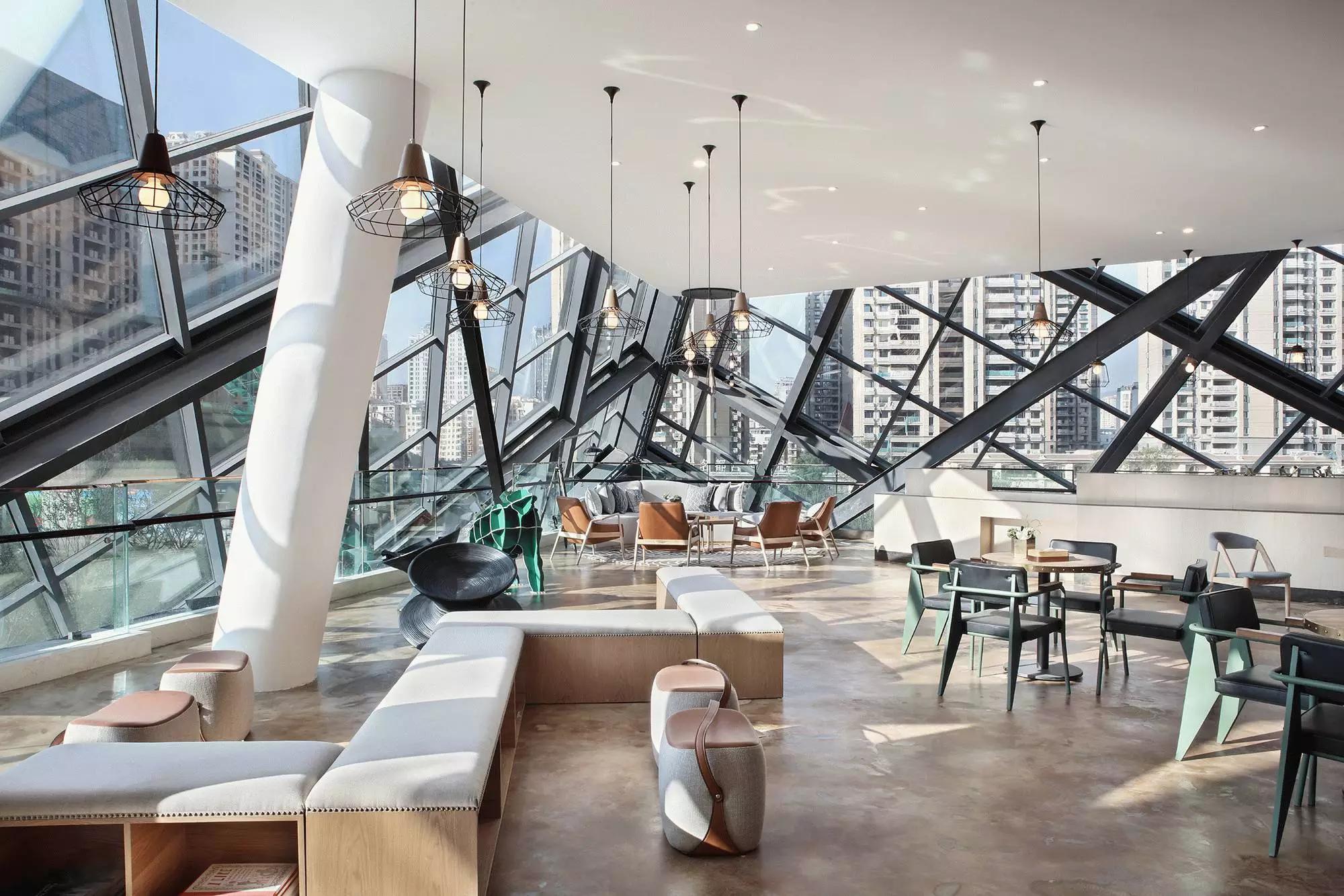 項(xiàng)目原屬昆明聯(lián)想科技城,后由融創(chuàng)地產(chǎn)接盤,他們希望將該建筑打造成為集辦公、商業(yè)、展示等多元化為一體的空間,并使其成為昆明新的城市地標(biāo)建筑。接手本案的主創(chuàng)設(shè)計(jì)師是默存設(shè)計(jì)的季青濤,作為具有建筑師背景的主創(chuàng)設(shè)計(jì)師,從建筑空間的思維從事空間設(shè)計(jì)便成為一種必然。在原有“盒子”空間的內(nèi)部,設(shè)計(jì)師以木結(jié)構(gòu)對(duì)空間進(jìn)行了重組和分割。