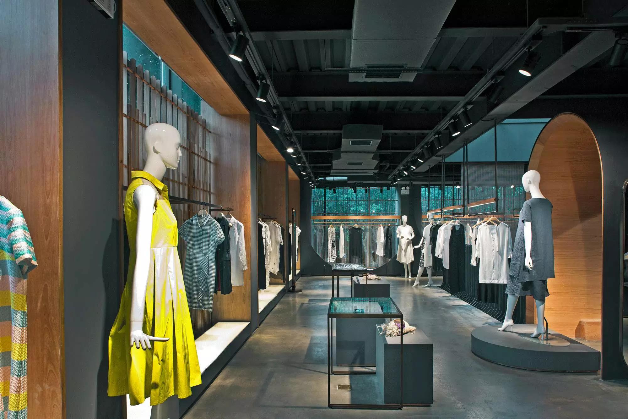 MINZE-STYLE品牌集合店位于中心公園旁邊,基地以前是一個封閉的建筑。設(shè)計開始結(jié)合現(xiàn)場周邊的綠色環(huán)境進(jìn)行融合,設(shè)想在綠色中將建筑消失成為一個出發(fā)點。我們在基本的層面,表達(dá)建筑使用的材料,基地及物理現(xiàn)實世界的存在狀態(tài),什么是墻,什么是表皮,什么是透明,這些問題會立即影響觀察者與使用者的感官與感知能力。我們力求世界的物質(zhì)性與感知的多元性,物質(zhì)性必須突顯,才能展現(xiàn)空間藝術(shù)的特質(zhì)。